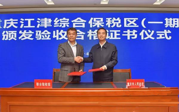 經(jīng)過認(rèn)真評(píng)審后,聯(lián)合驗(yàn)收組認(rèn)為:重慶江津綜合保稅區(qū)(一期)已圍網(wǎng)的1.28平方公里范圍內(nèi)的基礎(chǔ)和監(jiān)管設(shè)施符合《海關(guān)特殊監(jiān)管區(qū)域基礎(chǔ)和監(jiān)管設(shè)施驗(yàn)收標(biāo)準(zhǔn)》和國(guó)家有關(guān)法律法規(guī)的規(guī)定和要求,已具備封關(guān)運(yùn)行條件,同意通過驗(yàn)收。聯(lián)合驗(yàn)收組與重慶市人民政府簽署了《重慶江津綜合保稅區(qū)(一期)驗(yàn)收紀(jì)要》,并為江津綜保區(qū)頒發(fā)了(一期)驗(yàn)收合格證書。