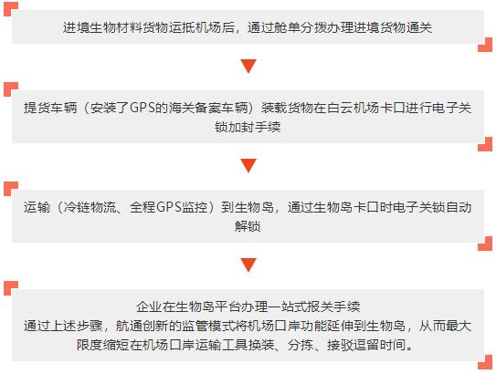 通過進境生物材料海關艙單分撥監(jiān)管模式,減輕進口生物材料在機場排隊候查瓶頸壓力,最大程度地壓縮在機場分揀逗留的時間,直接提運到生物島;還解決了涉及查驗的生物醫(yī)藥材料對開箱查驗環(huán)境的特殊要求,實現(xiàn)進口生物材料從機場快速移庫到生物材料出入境平臺,在平臺辦理海關通關手續(xù)。